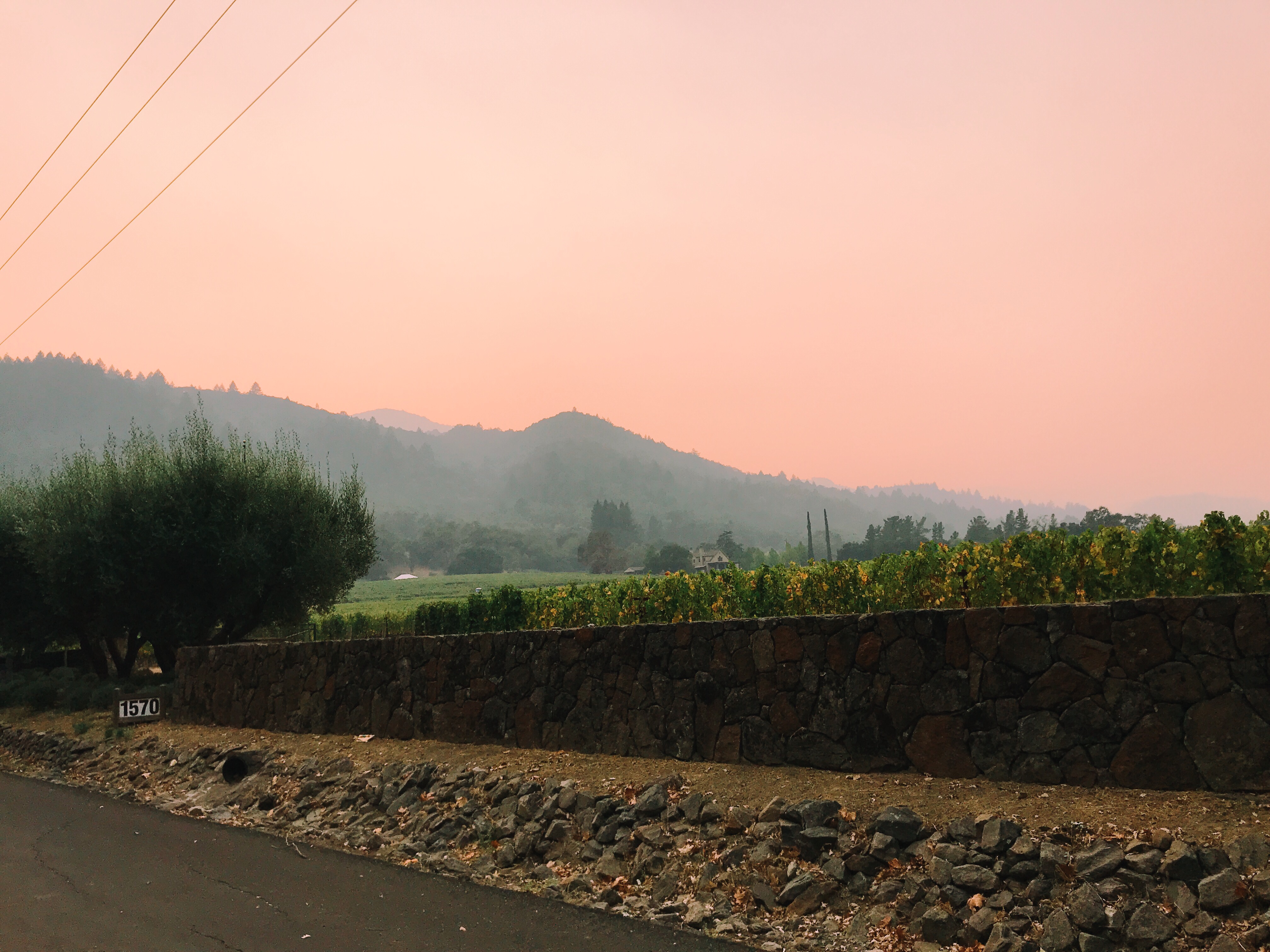 Driving into work my heart sank as I saw the endless orange glow and flames on the hillsides. For those of you who don’t know Napa is only 29 miles long and 5 across, so everything is pretty close to begin with. And being able to see the flames so clearly from the highway I knew they were no joke; one of our worst fears had come to life. Somehow the hills had been ignited and this was happening.